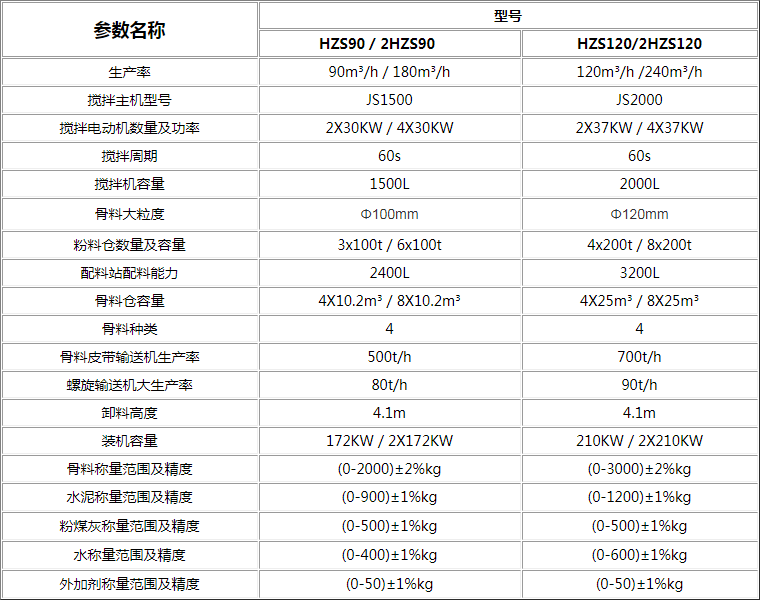 首先,我們先來看一下:HZS90混凝土攪拌站的具體參數